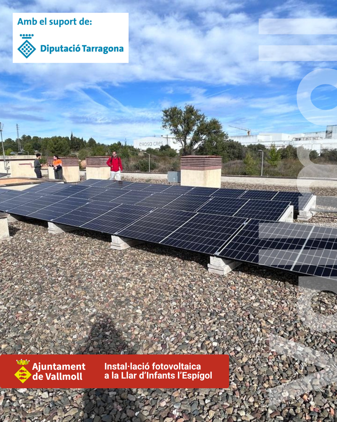 L’Ajuntament ha finalitzat les obres d’una instal·lació fotovoltaica d’autoconsum de 13,80 KWp a la Llar d’Infants l’Espígol, situada al carrer de les Garrofes, s/n, del polígon industrial de Vallmoll.